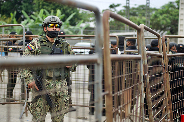当地时间2021年11月13日,厄瓜多尔西部瓜亚斯省首府瓜亚基尔,军人在暴乱监狱外执勤。人民视觉 图