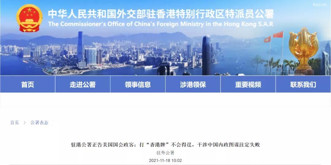 “美方不好好反思和改正自身问题,试问哪来的底气对香港事务和中国内政指手画脚,妄加置喙?” 针对美国国会“美中经济与安全评估委员会”再次发表所谓年度报告就香港事务大放厥词,我外交部驻港公署发言人今天(18日)表达强烈不满和坚决反对。美国会一些政客此时忙不迭地打起“香港牌”,强行给自己加戏“刷存在感”,其所作所为不过是图谋给中美关系添堵扎针的恶作剧而已,注定失败;所炮制的报告满纸谎话、穿凿附会,注定被扫进历史的垃圾堆。