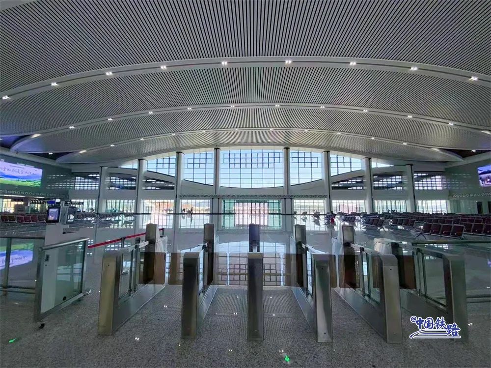 站房正立面采用开放式铝板幕墙设计,站台雨棚则采用了弧形造型,线条更加生动灵活。