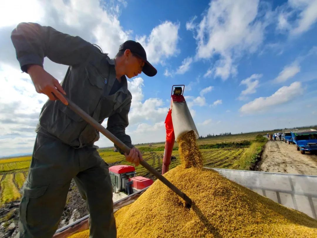 北大荒集团梧桐河农场里,董金福的40多垧地早已收完。“产量比去年多8万斤!自家5台大机器3天就整完了,太省心了!早年种地,‘小四轮’、小药壶和镰刀,秋收时地里全是人,现在这地里,全是高科技!”