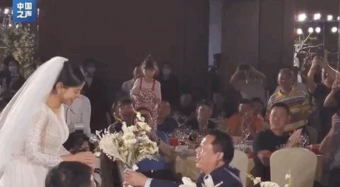 在女儿的出阁宴上,爸爸和女儿准备了一个惊喜。女儿“骗”妈妈穿上婚纱,当毫不知情的妈妈掀开眼罩,爸爸拿着捧花迎面走来,单膝下跪再次向她求婚,空气中满满都是幸福的味道。