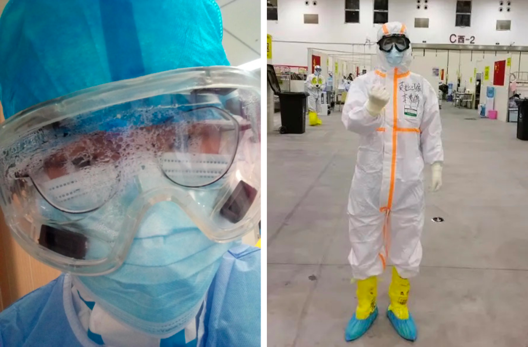 △张敏(左)、李梦鸽(右)援鄂时工作照