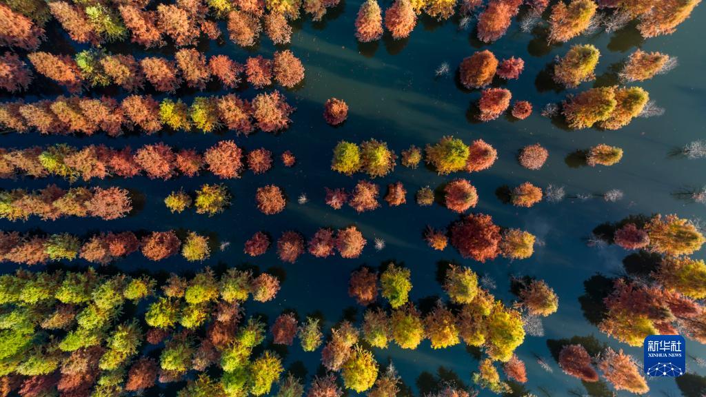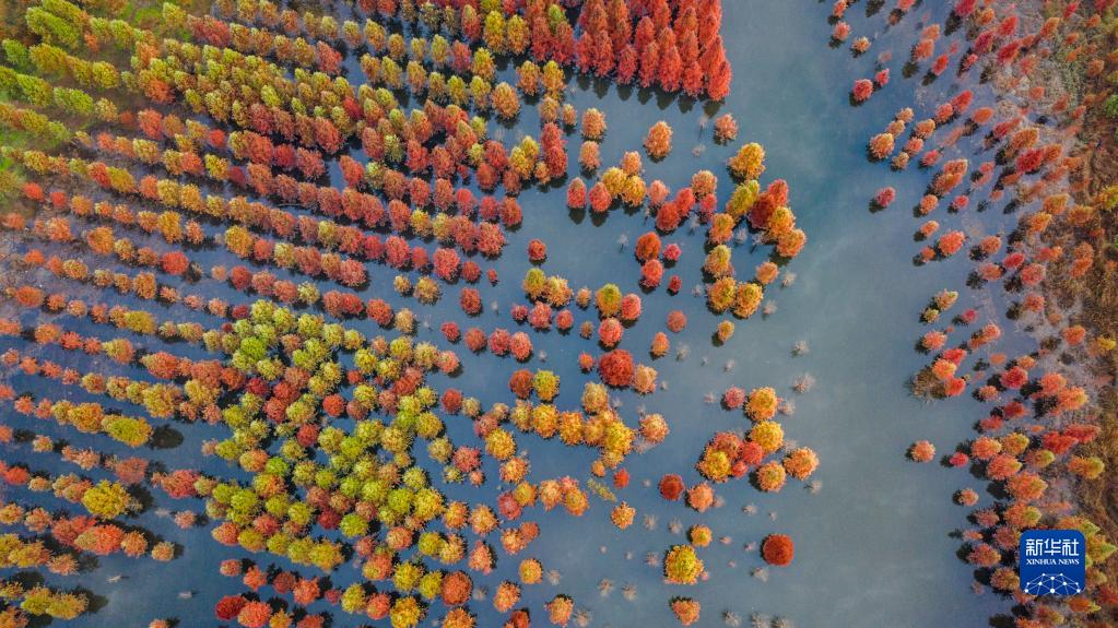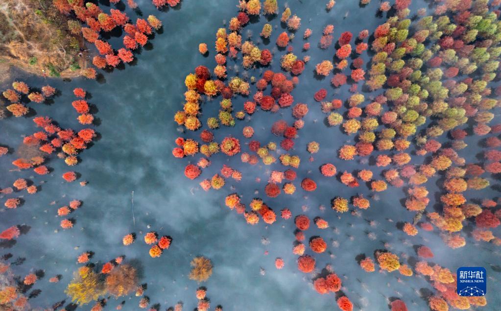 12月9日拍摄的甸尾村水杉湿地一景(无人机照片)。新华社记者 胡超 摄