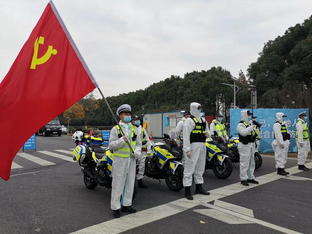 坚守在道路卡口防疫一线的宜兴交警的党员们。