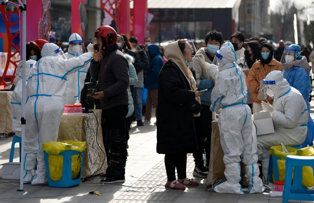 12月17日,市民在西安市雁塔北路一核酸检测点进行核酸检测。新华社记者 刘潇 摄