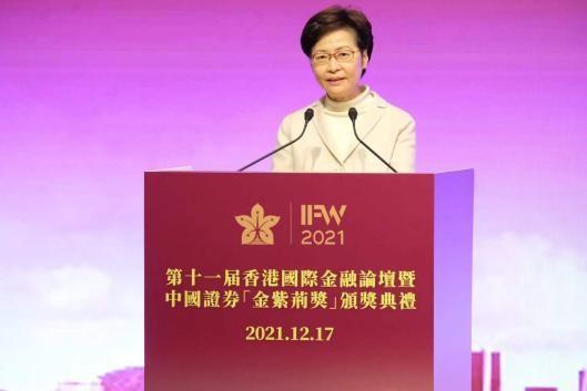 17日,香港特区政府行政长官林郑月娥出席第十一届香港国际金融论坛暨中国证券“金紫荆奖”颁奖典礼时表示,2021年是“十四五”规划开局之年,也是香港由乱转治、由治及兴的新起点。过去几个月香港的社会政治环境稳定,疫情基本受控,多项经济指标持续改善,显示香港的经济复苏势头良好。香港作为国际金融中心,具备稳健强韧的金融体系、有效的宏观经济政策,以及健全的监管制度,可以充分发挥香港担当国际资本进入内地和国内资本走向世界的桥梁角色,以香港所长,服务国家所需。