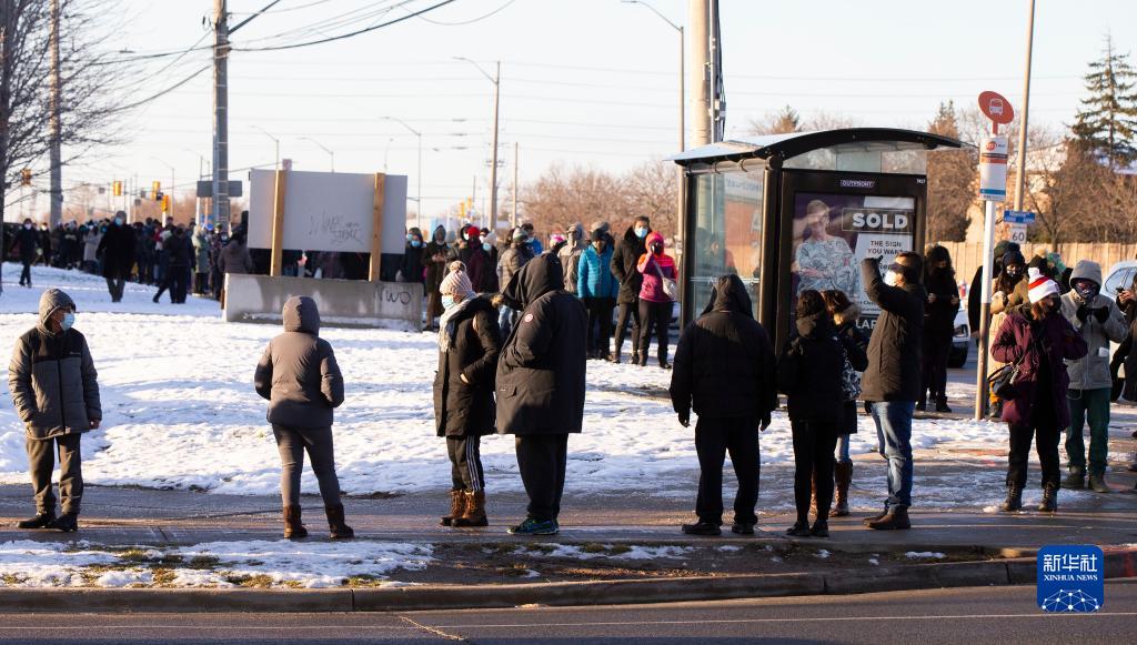 12月21日,人们在加拿大米西索加一处流动新冠疫苗接种点外排队。新华社发(邹峥摄)