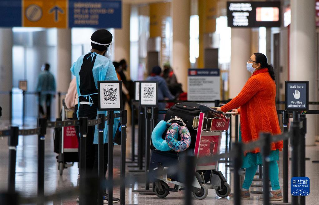 12月21日,在加拿大安大略省多伦多皮尔逊国际机场,戴口罩的入境旅客前往新冠检测站。新华社发(邹峥摄)