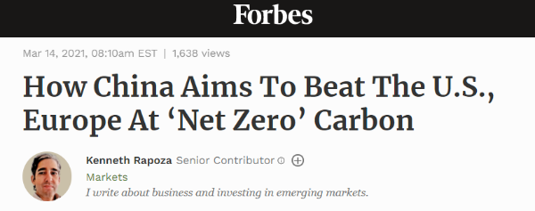 美国福布斯杂志网站报道称,伦敦关键元素集团(Key Elements Group)负责人戴维·扎伊金说,中国将加速投资清洁能源技术(比如电动汽车电池和太阳能电池板),并提高电网中零碳、零排放能源占比。