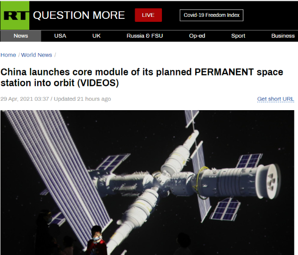 4月29日11时23分,搭载着中国空间站天和核心舱的长征五号B遥二运载火箭,在我国文昌航天发射场发射升空,准确进入预定轨道。外媒认为,这是中国将人类送入太空的计划中的重要里程碑,中国空间站在不久的将来会是人类近地轨道上唯一运行的空间站。