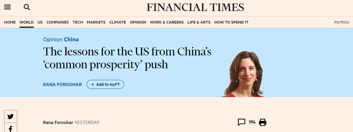 英国《金融时报》刊发评论文章称,有关中国“共同富裕”的新闻已经进入到美国主流电视节目,美国应该学习中国推动共同富裕的经验,特别是在经济增长方面,更加注重质量而不是数量。