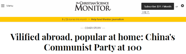 美国《基督教科学箴言报》报道称,中国政府的有力作为增强了国内民众对中国共产党的支持,中国民众对中国政府的满意度连年超过90%。中国对新冠疫情的有力遏制与国外应对不力形成鲜明对比。此外,中共不断实现具体发展目标,比如大规模的扶贫行动等。这些因素都不断提升了中国共产党在国内的支持度。