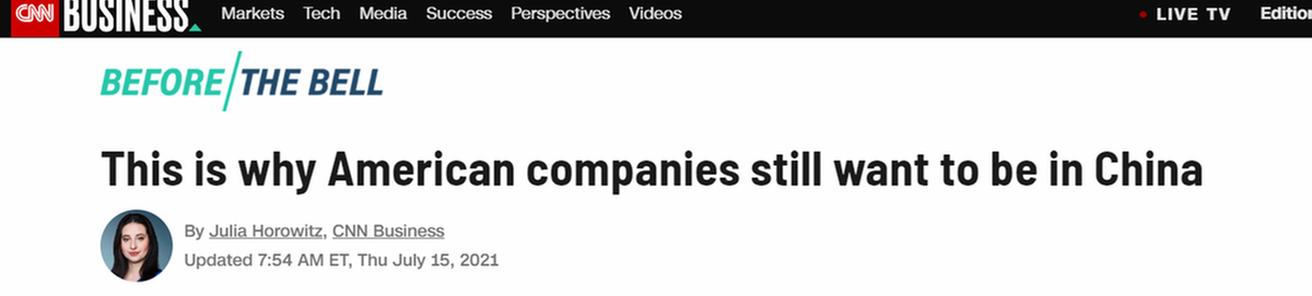 美国有线电视新闻网7月15日报道,中国最新的经济数据凸显了为什么对许多美国公司来说,留在中国发展是值得的。