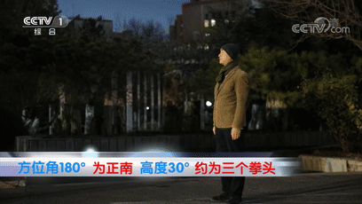 假设某一天中国空间站过境的方位角为180°,高度为30°,应该朝哪个方向?