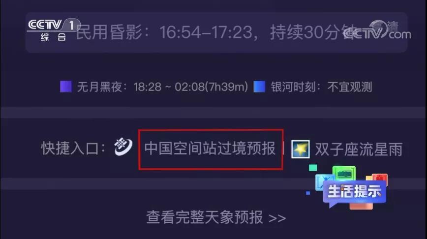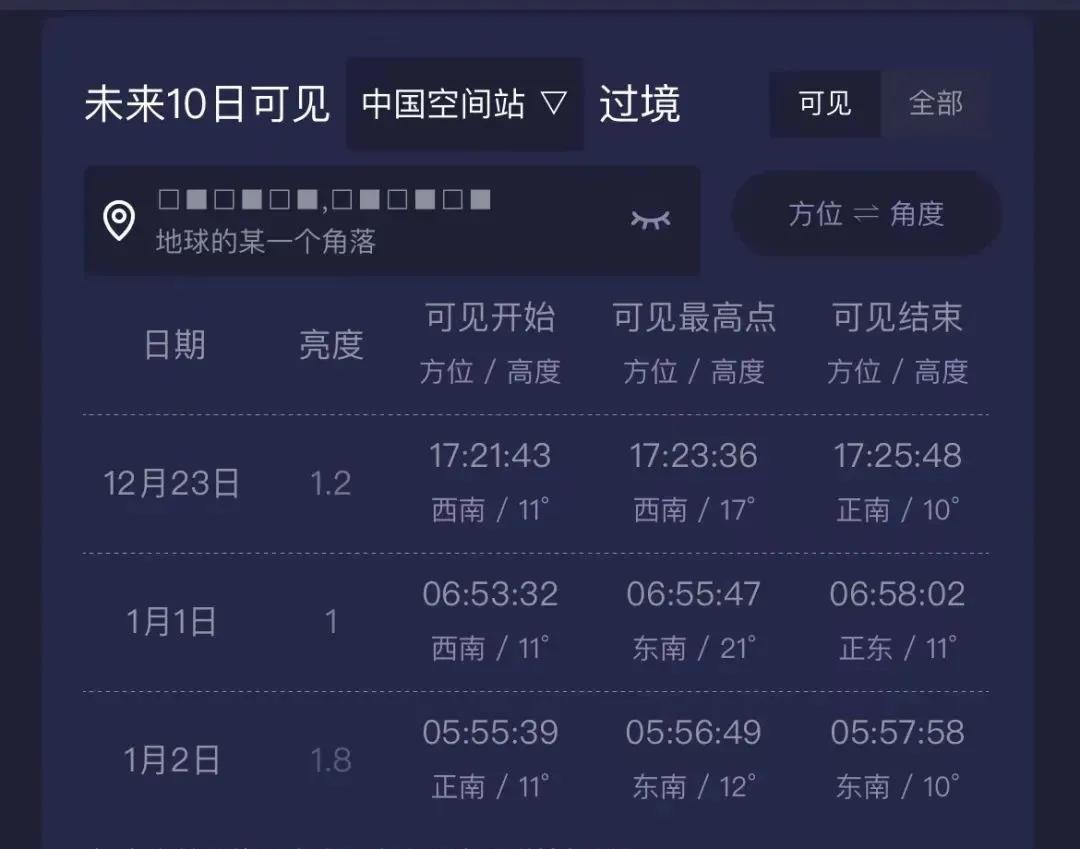 如果想看到中国空间站,就面朝南站立,胳膊平行于地面伸直,三个拳头的高度即为大致的观测角度。