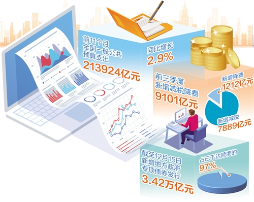 日前召开的中央经济工作会议明确,明年继续实施积极的财政政策,积极的财政政策要提升效能,更加注重精准、可持续。一系列措施正在发力,护航宏观经济大盘平稳前行。
