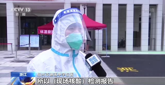 绍兴市迪荡中学校医:因为特殊时期,所以(现场核酸)检测报告在八点半之前都能出结果。