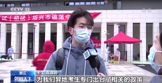 考生 陈逸杨:为我们异地考生专门出台了相关的政策,也要感谢社区,为了我的借考提供了很多帮助。