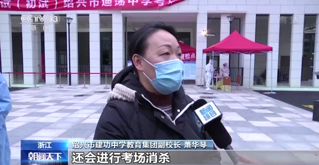 绍兴市建功中学教育集团副校长 萧华琴:考点里面设置了2个通道,1个通道专门给考生,1个通道专门给考务工作人员。实行分流进考场,等每场考试结束,还会进行考场消杀。