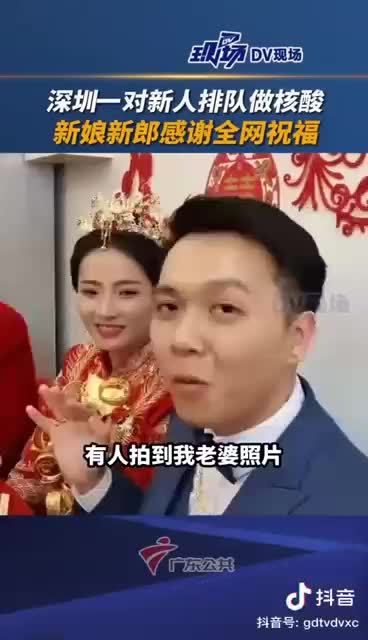 对于来做核酸检测的新人,众多市民也在现场送上了祝福。一名网友表示:“人生大事很重要,核酸检测也很重要。两个重要的事,同一天做吧。这么支持防疫的新娘子,以后一定是个好老婆,祝百年好合,多生贵子!”