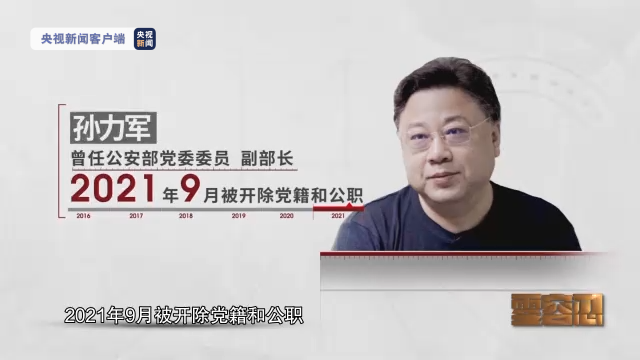 孙力军,曾任公安部党委委员、副部长,2021年9月被开除党籍和公职。处分通报用词极为严厉,指其“背弃‘两个维护’,毫无‘四个意识’,政治野心极度膨胀,政治品质极为恶劣,权力观、政绩观极度扭曲”。
