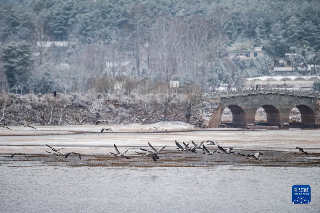 这是在云南会泽黑颈鹤国家级自然保护区拍摄的黑颈鹤(1月13日摄)。新华社记者 胡超 摄