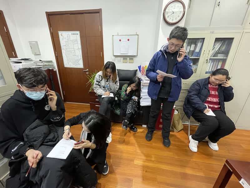 在静安区彭浦镇,也有一支由35岁以下青年公务员、社工等组成的临时青年突击队,从1月13日晚开始协助流调工作,45人分成3个小组,白天下班后轮流值夜班,致电居民核查居住地址。