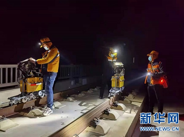 近段时间的凌晨,他们都要推着仪器,伴着寒风、冷月,在钢轨上行走、检查、标记、记录,日复一日地重复这一件事。