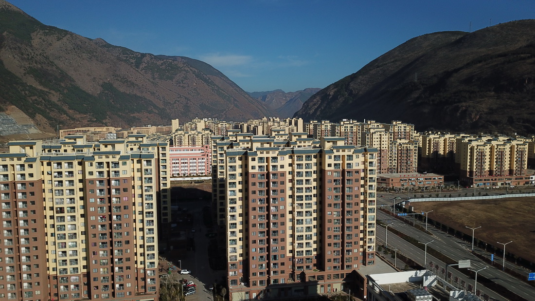 1月19日拍摄的云南省会泽县城搬迁安置点一角(无人机照片)。新华社发(李荣山 摄)