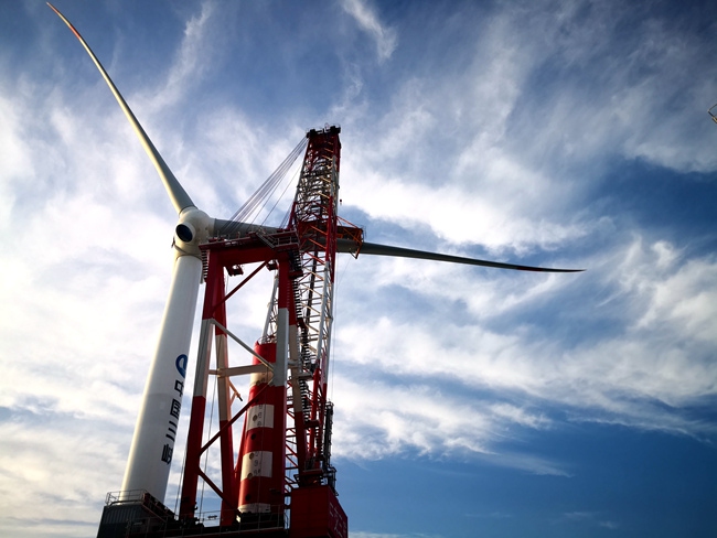正在安装的海上风电机组。张程远摄