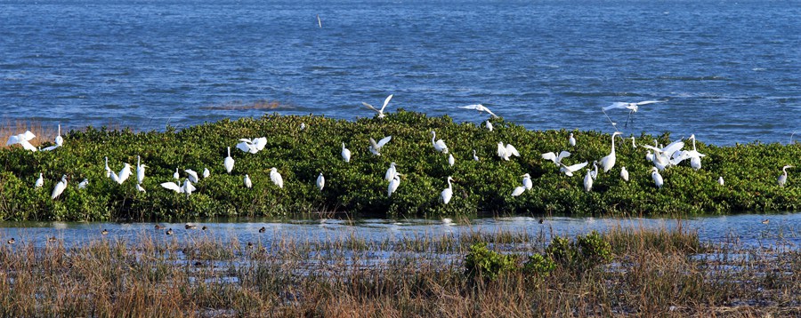 在漳江口红树林国家级自然保护区,多种水鸟在红树林中栖息。戴园笙摄