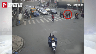 护送两个孩子通过斑马线
