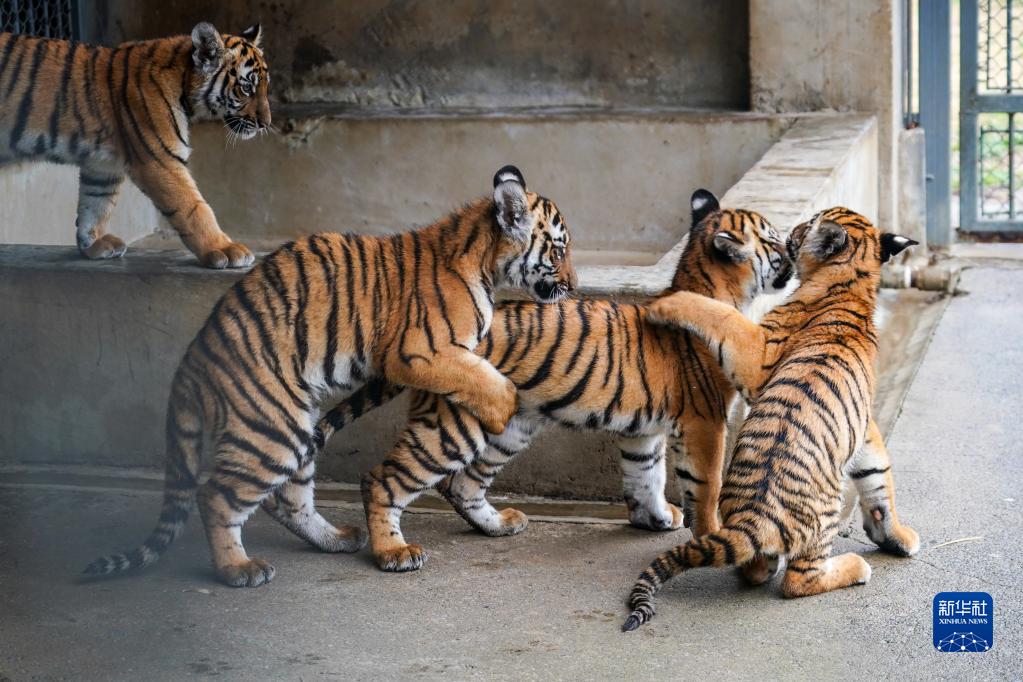 虎年即将到来,苏州上方山森林动物世界2021年9月出生的4只憨态可掬的小华南虎,吸引了众多游客的目光,为新春增添节日气氛。
