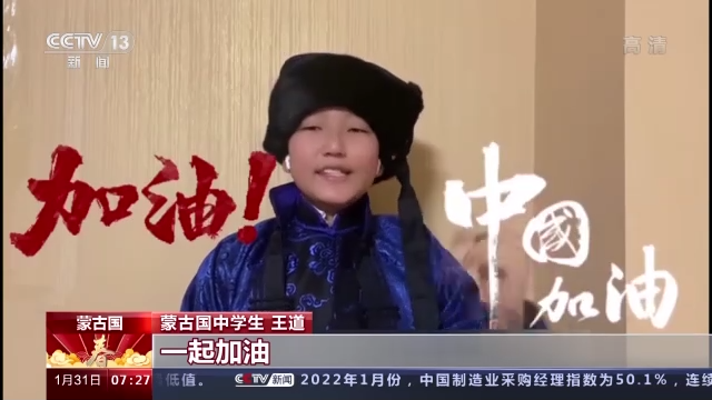 蒙古国中学生 王道:2022年北京我为你加油,2022年冬季奥运会我为你喝彩。最后祝中蒙两国选手一起加油。