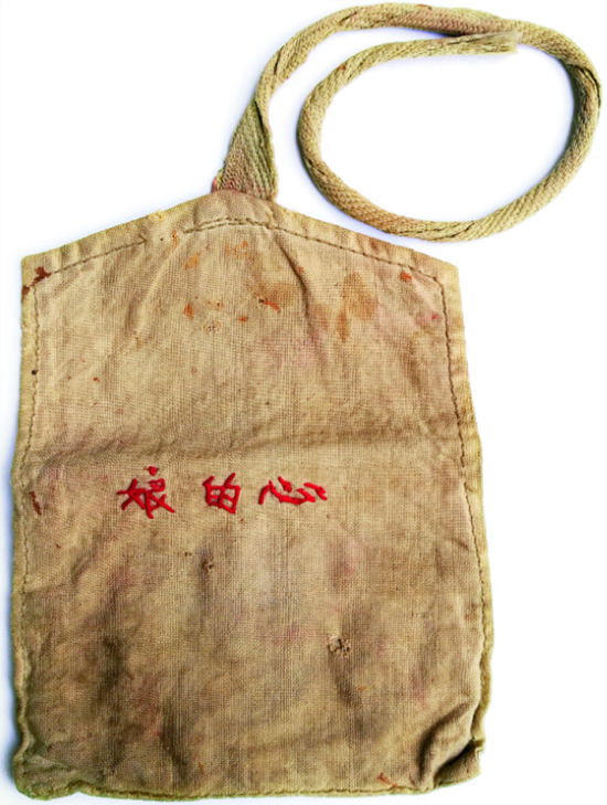 妈妈记挂远在陕北农村吃苦的儿子,亲手缝制了一个针线包,上面绣了三个红色的字:娘的心。