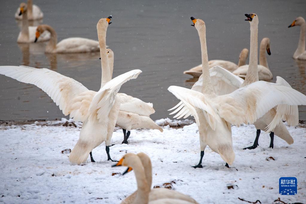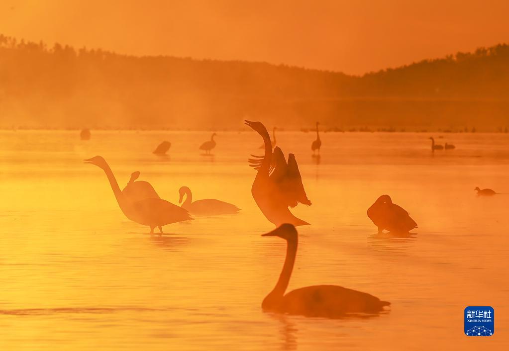 2021年11月28日在山东荣成大天鹅国家级自然保护区拍摄的大天鹅。