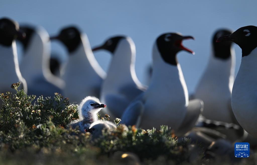 遗鸥在陕西省神木市红碱淖湿地保护区的鸟岛上繁殖的小遗鸥(2021年6月3日摄)。