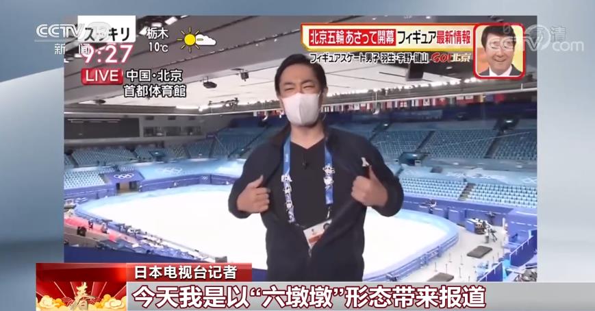 还有日本媒体的记者在直播连线时难掩对“冰墩墩”的喜爱。