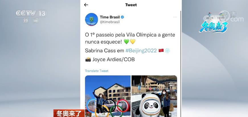巴西队在其社交媒体官方账号上发布了一组运动员们来到冬奥村后第一时间拍摄的照片,运动员们进入房间后,行李还没打开,就与“冰墩墩”抱枕合影,自由式滑雪运动员萨布丽娜·卡斯还特意在雪地里与冬奥村里的一只大型“冰墩墩”合影留念。