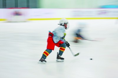北京景山学校冰球队队员正在训练。郭颂摄/光明图片