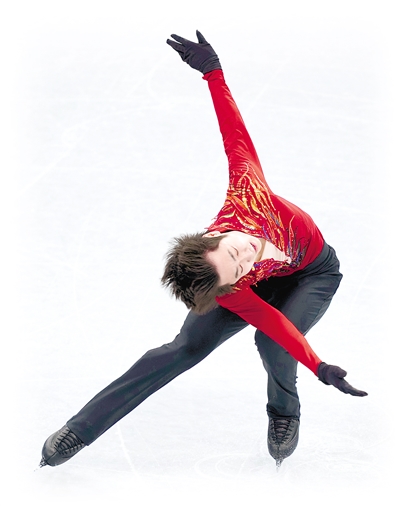 2月6日,中国选手金博洋在比赛中。当日,花样滑冰团体赛男子单人滑自由滑比赛在首都体育馆进行。