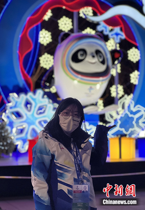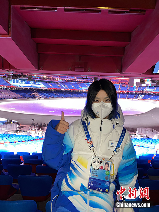 中央美术学院的香港学生林晓雯今年作为北京冬奥会志愿者,首次在京过年。图为她近日在“鸟巢”参加北京冬奥会开幕式的志愿者服务。(中新社发 受访者供图)