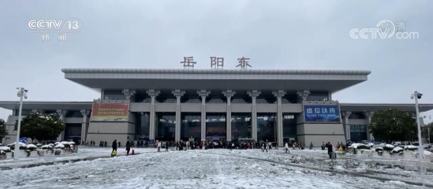 在湖南岳阳,记者看到由于降雪较大,岳阳东站和岳阳火车站正组织人员在站台撒盐防止积雪结冰,在关键通道铺设防滑垫,加强现场秩序维护。