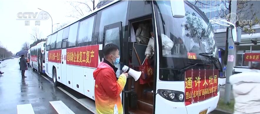 央视网消息:2月7日是春节假期后上班的第一天,苏州迎来节后首趟复工专车,来自山西、河南两地的350多名工人顺利从老家抵达苏州昆山。