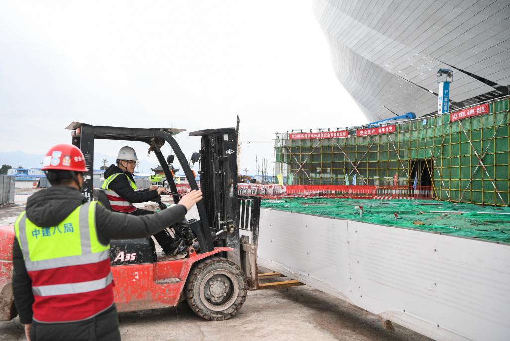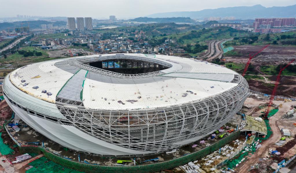 2月7日,重庆龙兴足球场项目建设现场。新华社记者王全超 摄