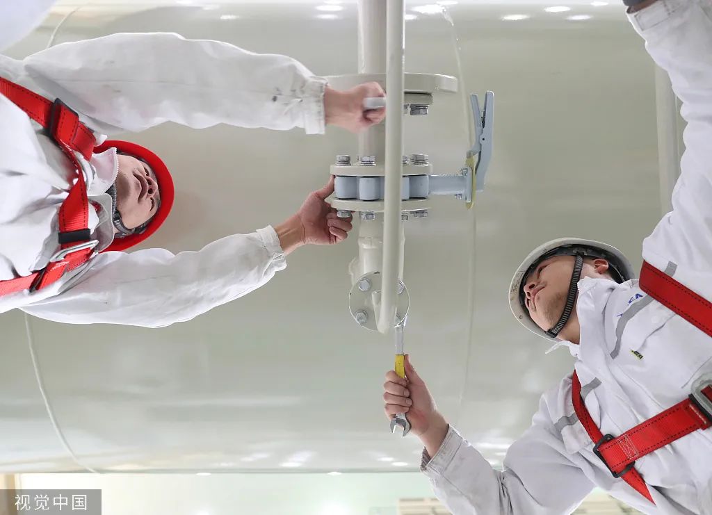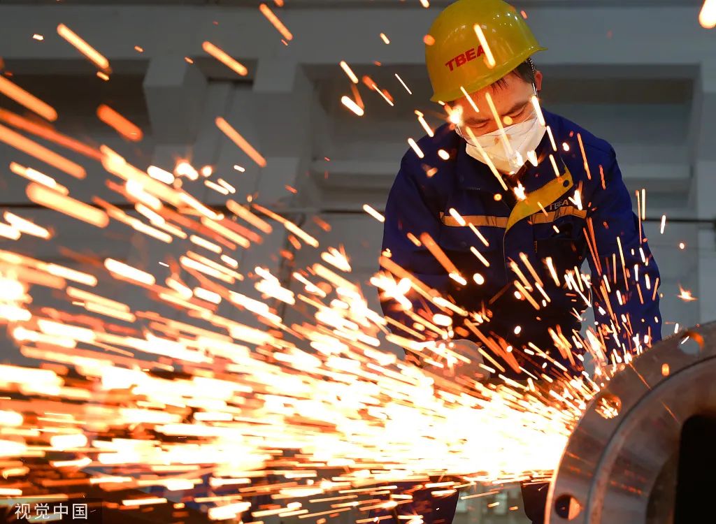 2022年2月7日,江苏淮安,工人加工生物质焚烧电站设备作业。