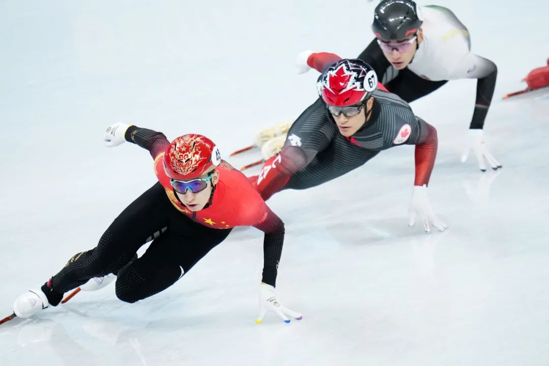 2月7日,任子威(右)与队友李文龙在比赛中出发。新华社记者 兰红光 摄