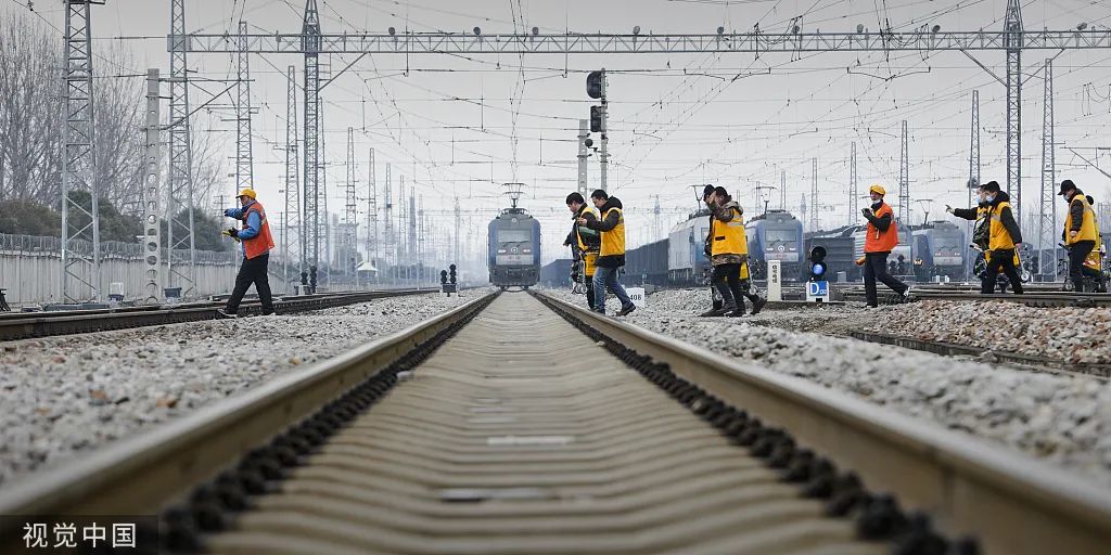 2022年2月7日,河南南阳工务段组织铁路探伤人员对宁西线南阳西站的14组道岔进行探伤检测。