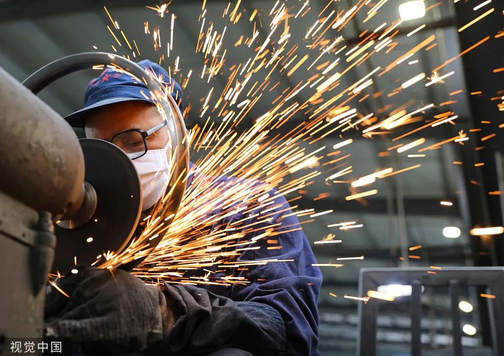 2022年2月7日,湖南省衡阳市雁峰区的某油箱车间,工人进行打磨抛光作业。