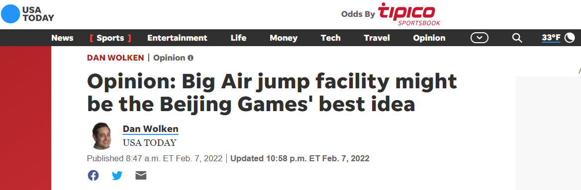 《今日美国》网站评论认为,首钢大跳台可能是北京冬季奥运会场馆建设最好的理念。